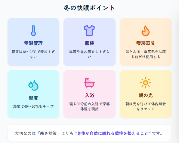 ◆ 冬の睡眠まとめ|温めすぎず、整えることが快眠のポイント